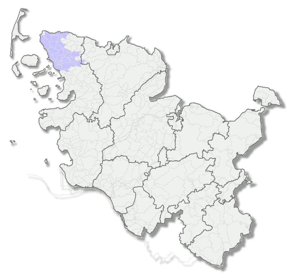 Das Genossenschaftsgebiet befindet sich im nördlichen Nordfriesland von der dänischen Grenze bis südlich der Ortschaft Langenhorn.